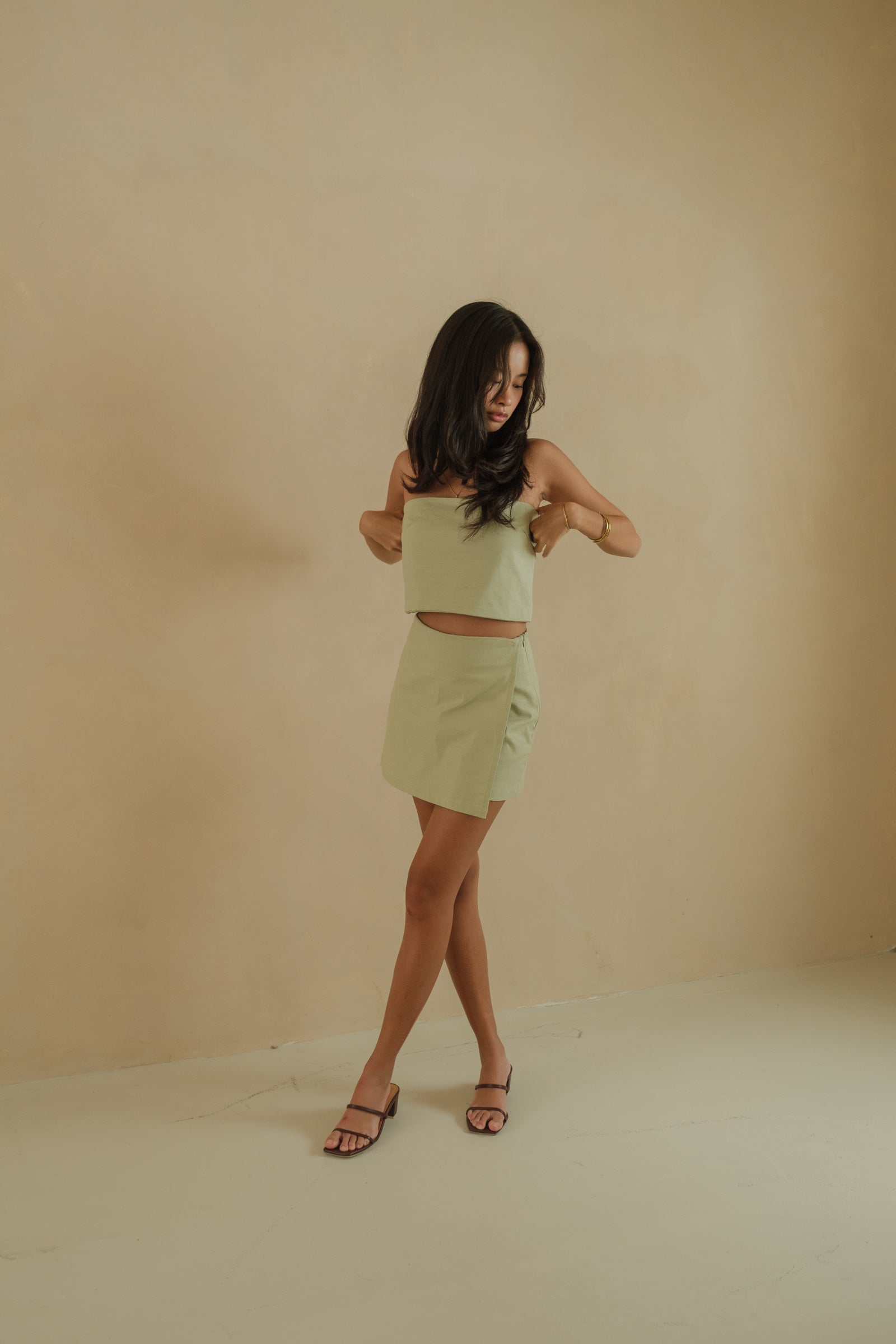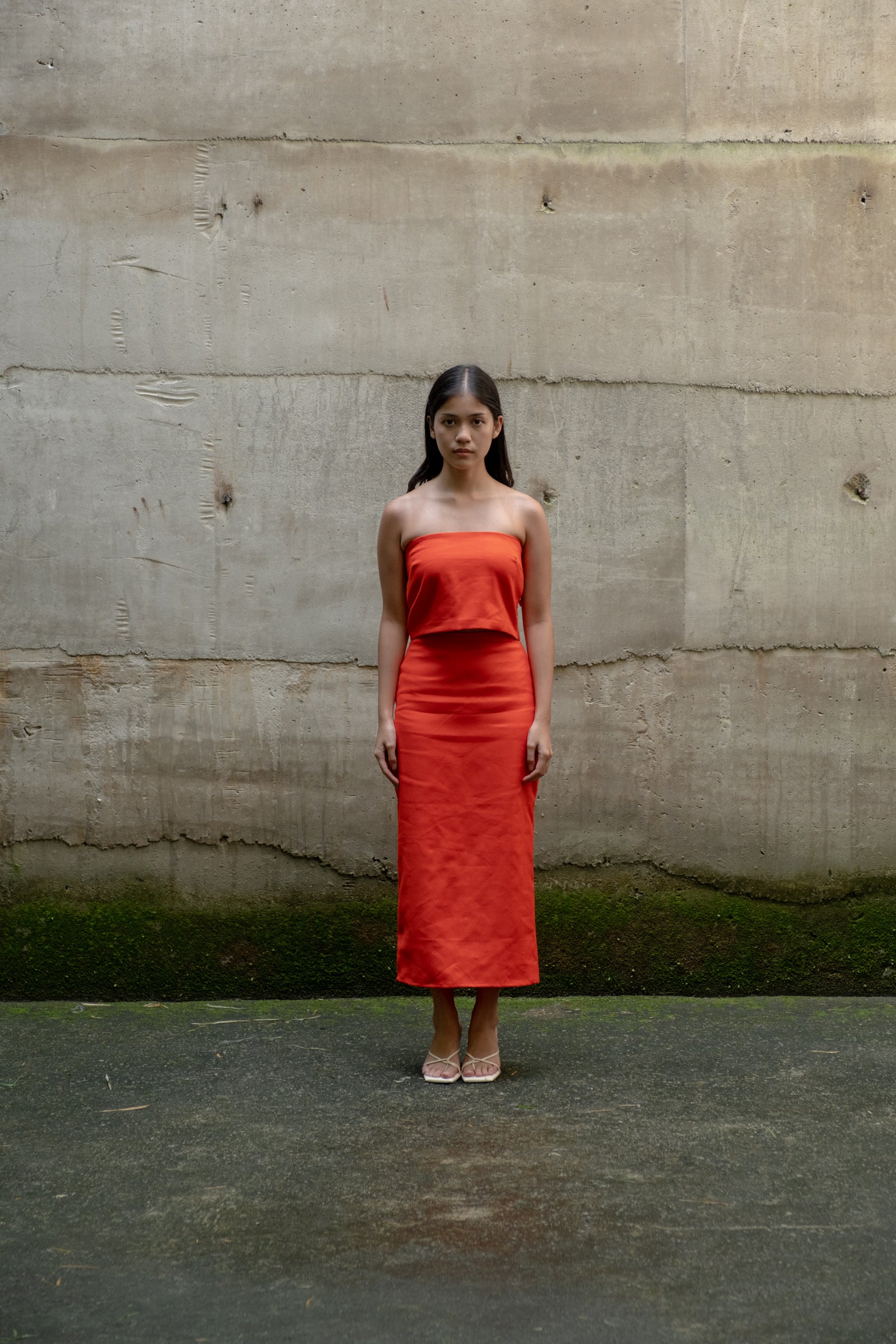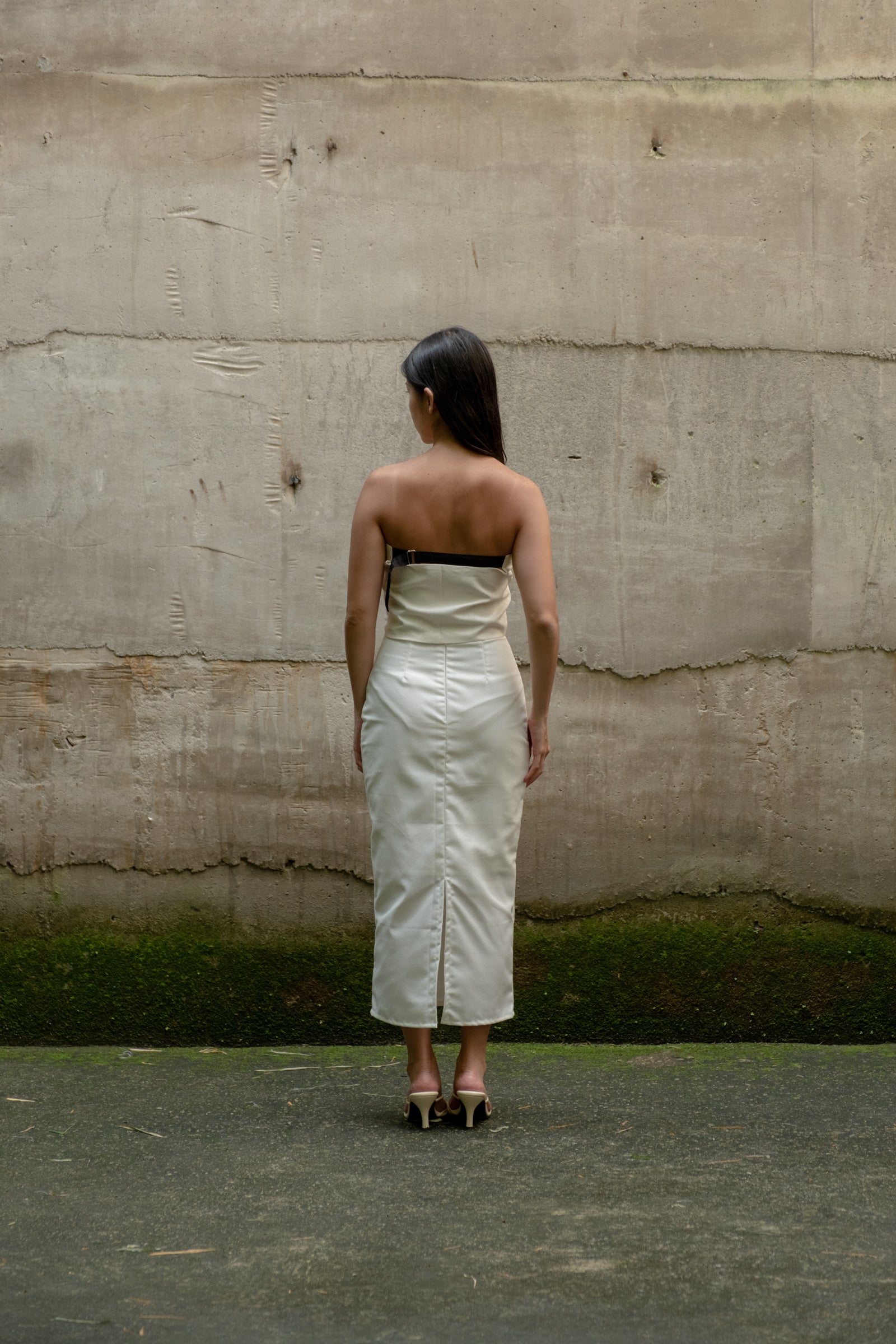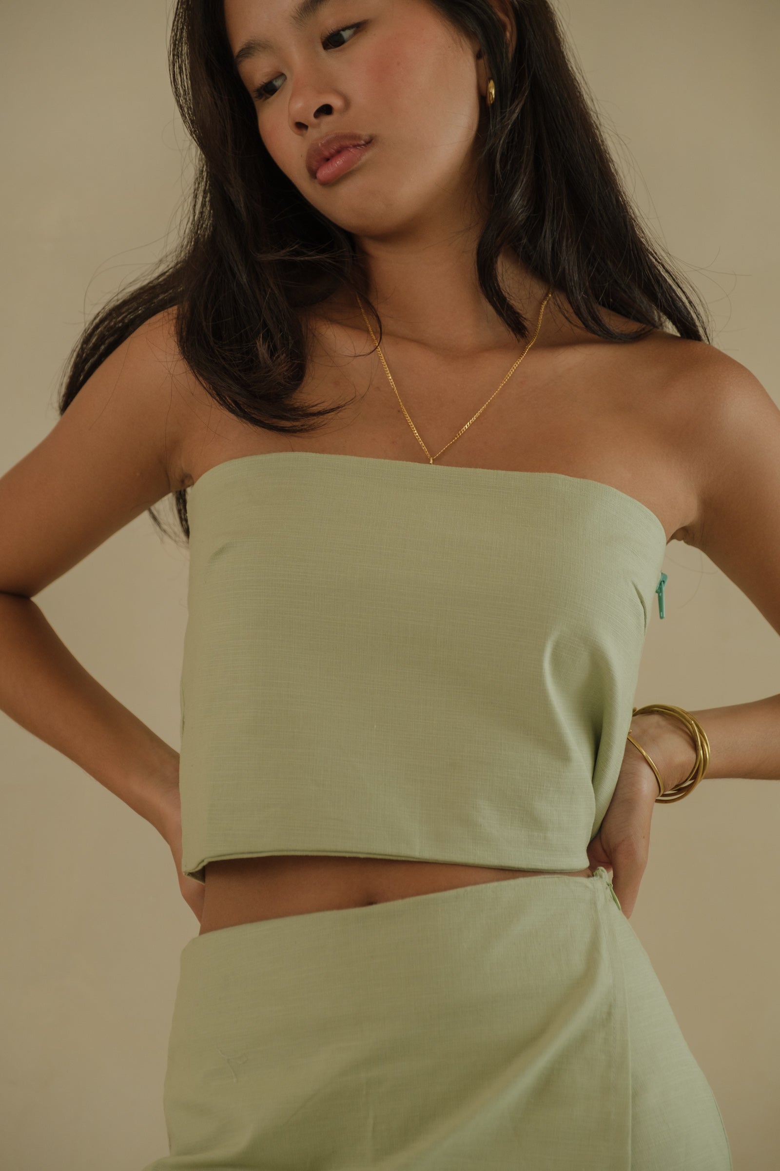 A tube top you can dress up or down. Features a side zipper and adjustable back for easy wear. Can be worn either front or back. Models wear Extra Small. Made in Cotton Linen.