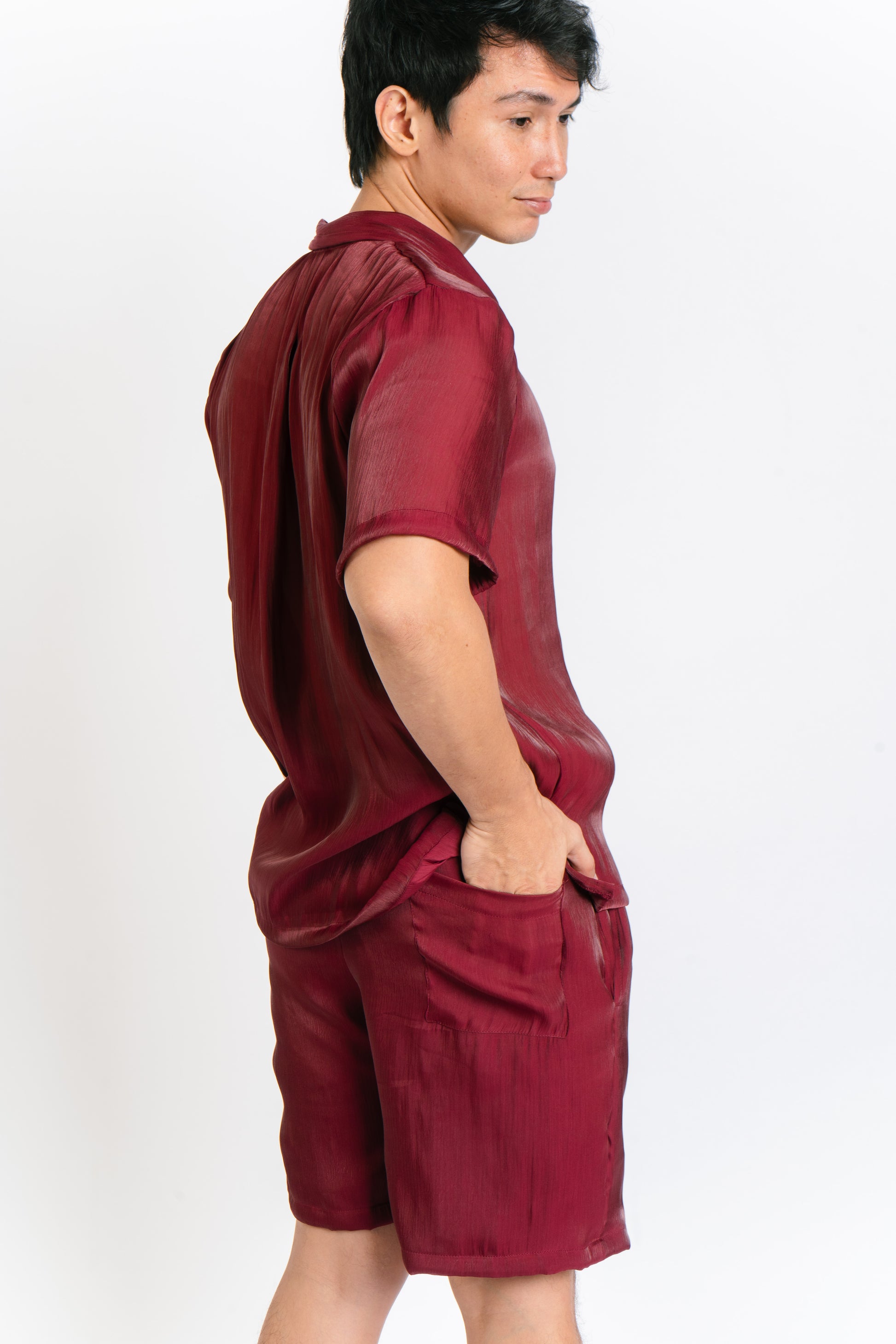 The Mari Shorts features a deep front pleat with garterized back. It has a hook and zipper closure. Made in Lyocell. Model wears Medium.
