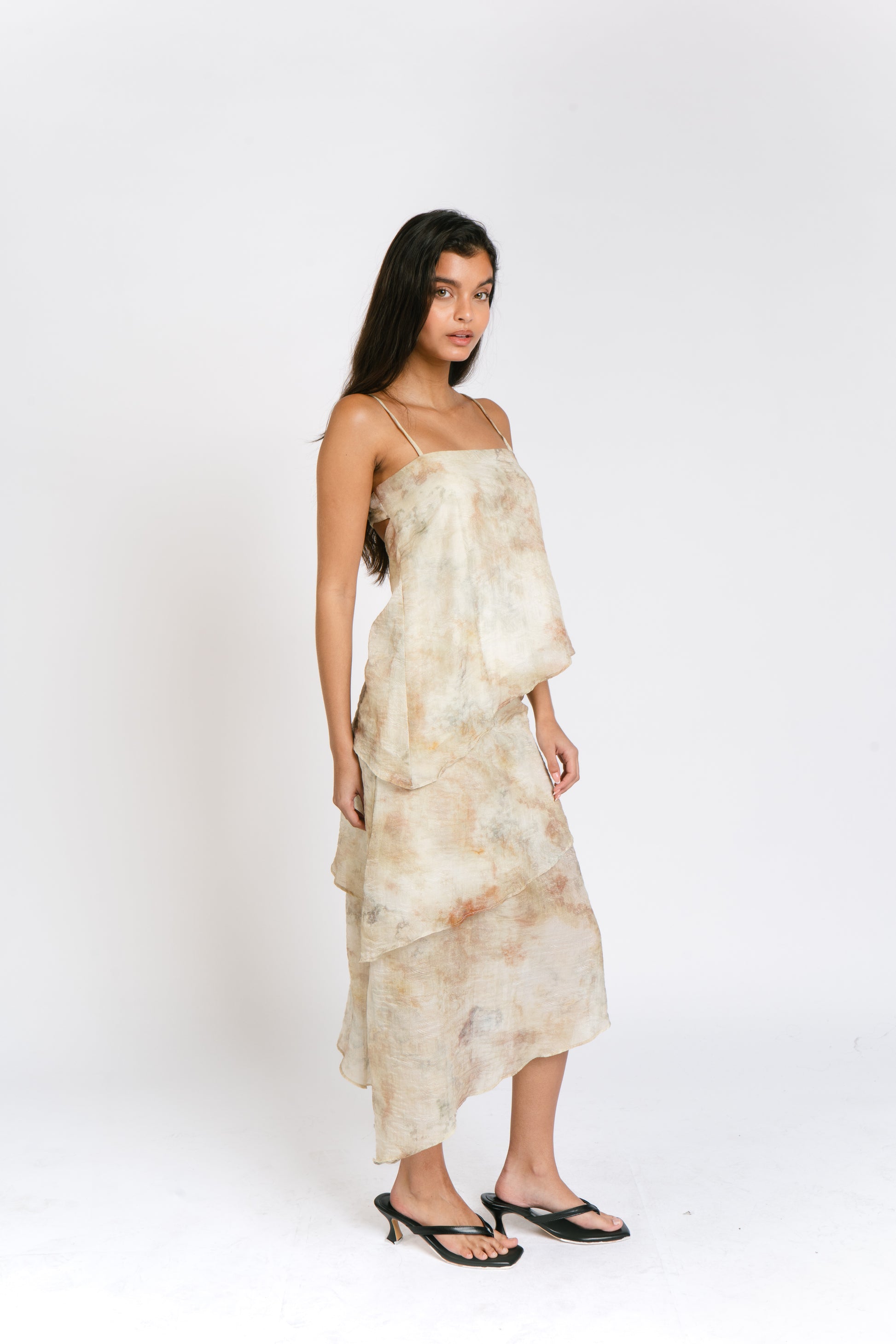 The Solen Skirt features 2 tier skirt with asymmetric hem line and side zipper. It is fully lined. Made in Cotton. Model wears XS.