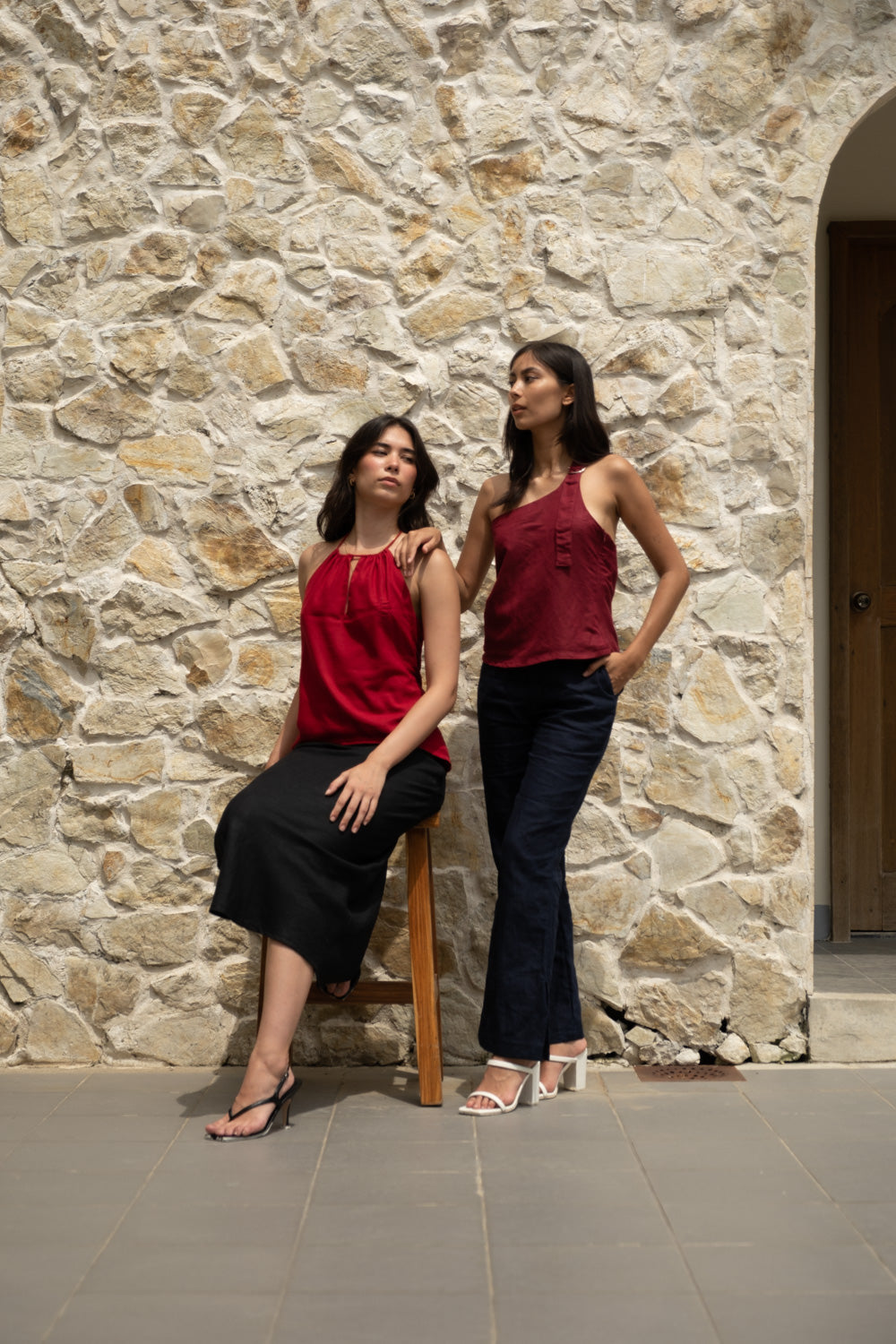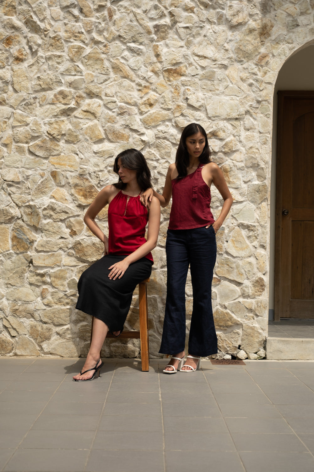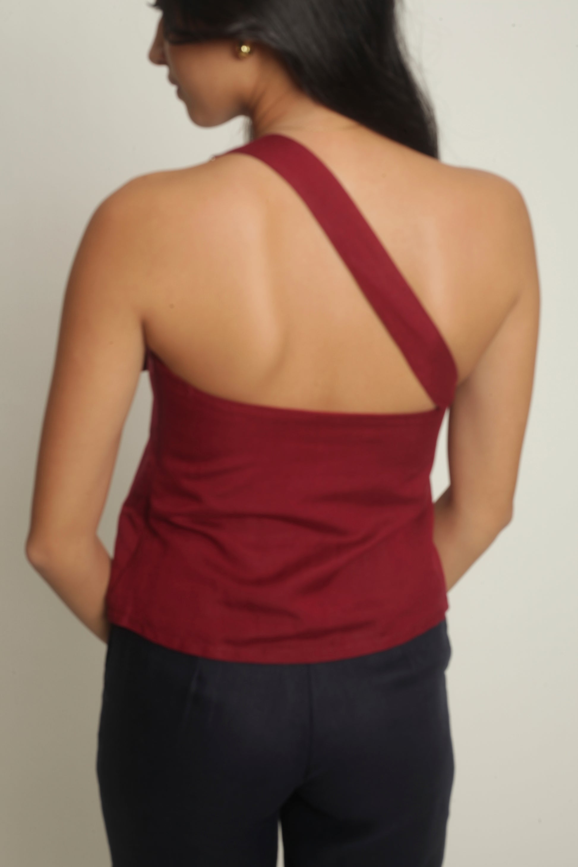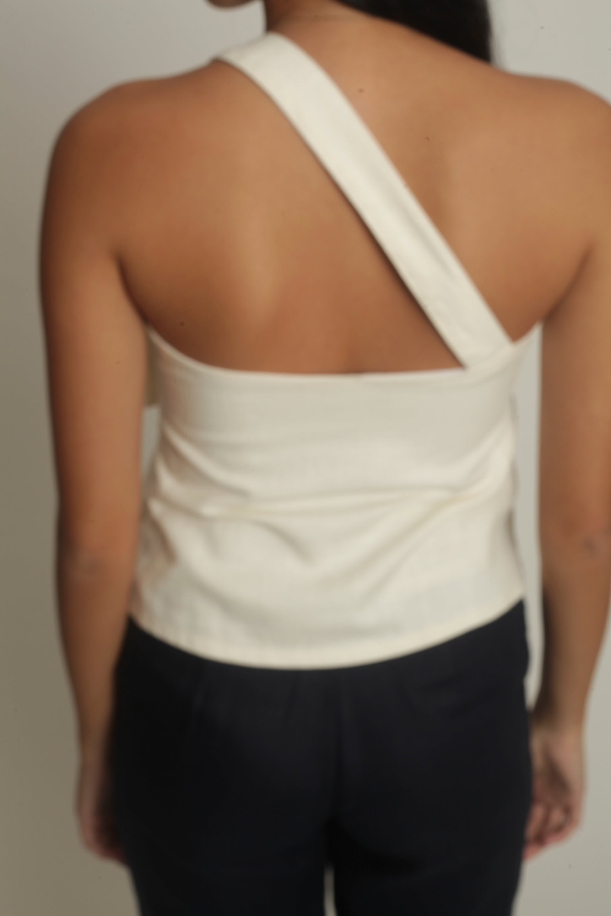 The Simone Top sports an asymmetrical neckline with a front buckle detail. It features a side zipper and is fully lined. Best paired with the Anya Pants or Maita Pants. Made in Linen. Model wears XS.